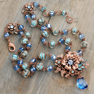 Pink Murano Glass Flower Bead Long Necklace N1460