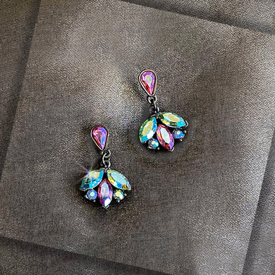 Rainbow Flower Vintage Earrings, Crystal Flower, Drop Earrings, Summer Jewelry, Boho Jewelry, Festival Earrings, Retro Earrings E945